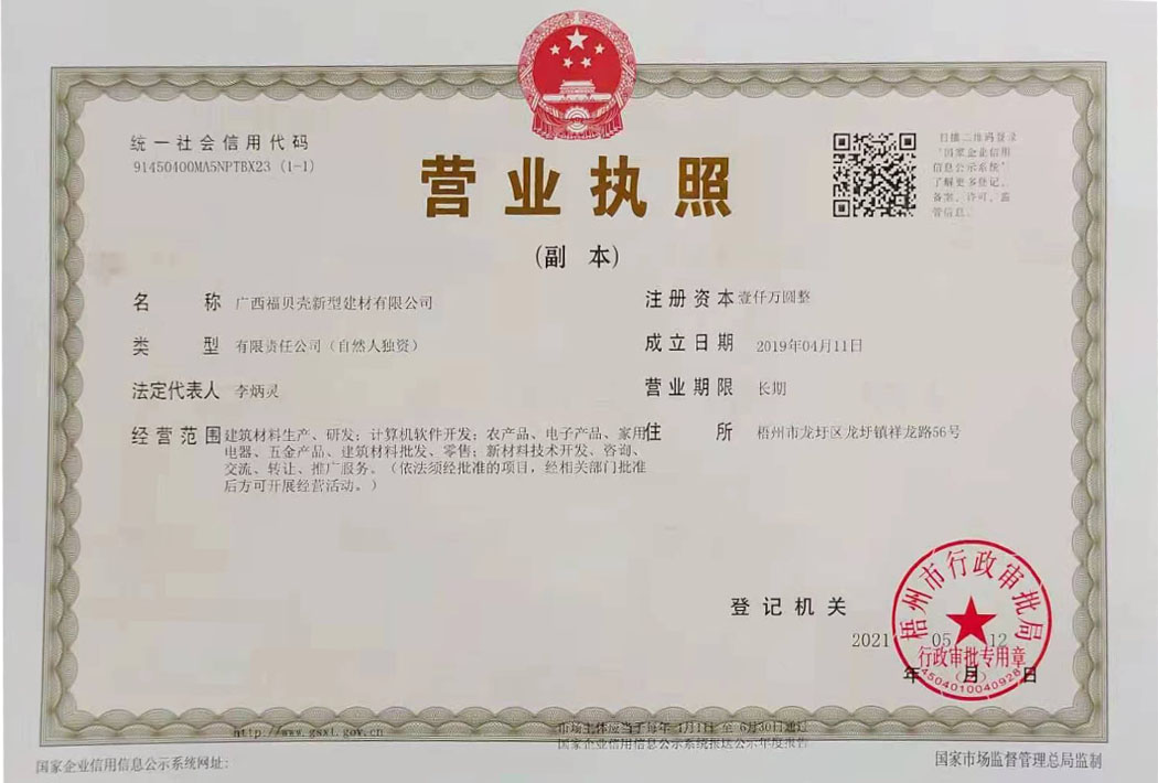 本公司研发生产的福贝壳贝壳粉是贝壳粉涂料行业中首家在研发、生产、销售贝壳粉涂料等业务通过ISO9001国际体系认证标准的企业,公司业务覆盖全国,专注于环保涂料和施工性能的研发,立志做全球室内墙壁环保性能卓越的涂料品牌。
