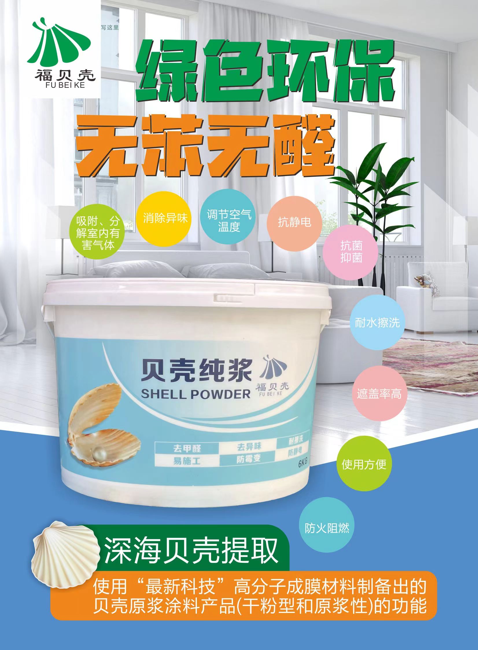 福贝壳新型建材有限公司成立于2019年,本公司是一家专门从事新型建材研发、生产、销售于一体的企业,公司有专业的技术研发队伍,秉着“打造最健康、最适合的环保建材”的理念,研发出最新内墙环保涂料、福贝壳贝壳粉、原浆、纯浆。